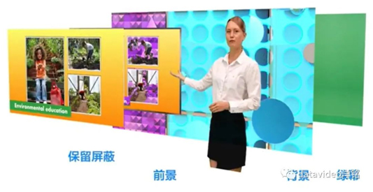 如果我们录制精品课程,老师的PPT画面可能会有绿色或者蓝色元素,正常的抠绿或者抠蓝的情况下,就会被抠掉,PPT的某一部分会变成透明,这样的效果不是我们想要的。又或者我们主持人或者嘉宾的服装,有绿色的元素。传统的抠像机是无法做到避免保留这些想要保留的绿色元素。此时我们就需要色键器有保留某些元素的功能。DVK-400的保留屏蔽功能便是为解决这一问题而生的。