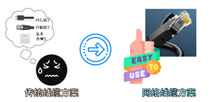 该方案最大的特点是使用网线进行传输,这使得在施工过程中大幅降低了布线难度,一根网线取代传统同轴电缆和电源线的方式既减少了布线数量,又能提高了布线的灵活性。不论是新建或是改建项目,都能用较低的成本高效的完成施工。重要的是,这种方式不仅避免了传统视频线缆的埋线布线复杂工程,能轻松追加设备,还能避免同一点位因强弱电线共存造成的信号干扰问题。