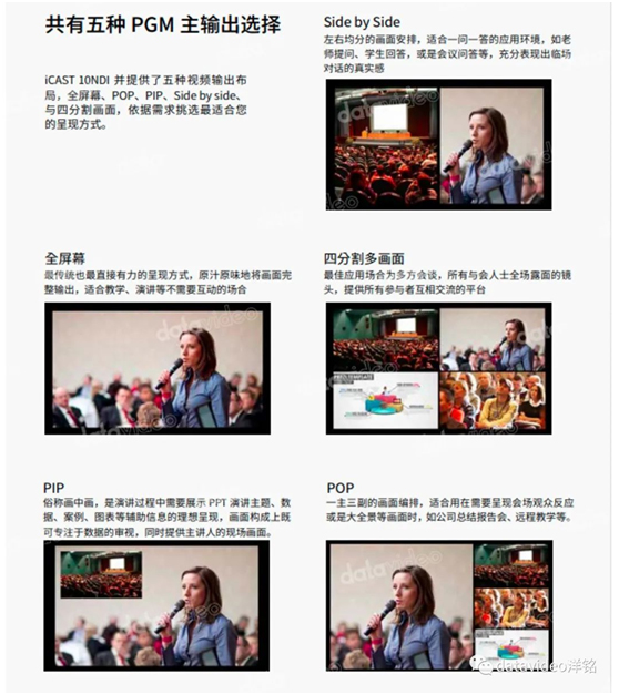 iCAST 10NDI视频会议一体机,拥有丰富的设备输入接口及输出分割布局。使系统集成提供了超强的兼容性与便利性。对于会场录直播都具有高性价比。展现多元的视频画面,让会议演讲内容展现形式更加专业。它可通过 RJ-45网线接口实现 IP 视频信号输入,支持 RTMP、 SRT 协议, 可把远端分会场推流信号,拉流到本地主会场进行时时切换,灵活应用多种的视音频传输接口,无须为不同设备的接口兼容性而烦恼。