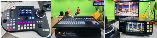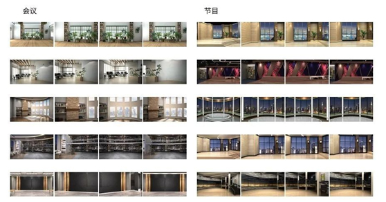 关于虚拟背景,用户可以外接电脑或自行导入静态图片做虚拟背景使用,也可以使用SE-4000 内建的十组主题场景,每套场景具有4个角度,可供左方、正面、右方、与正面远景安全机位使用,特别适用于会议直播与访谈节目拍摄使用。