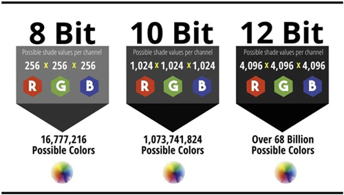 8bit、10bi、12bit色深可显示色彩数量对比