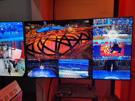 不同冬奥场地、房间的信号可以做到实时共享,系统兼容两种压缩算法,域内采用浅压缩,无损无延迟传输及显示,跨域采用深压缩。使得冬奥会开闭幕式运行监控中心、鸟巢赛事中心、鸟巢运行指挥中心、冬奥会和冬残奥会运行指挥部调度中心,这四个不同场地之间的数据和画面可以更好的共通、共享;