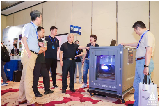 8月16日至17日,由北京照明学会联合赛尔传媒主办的2022北京照明科技论坛在京隆重召开。论坛以“科技点亮智慧之光”为主题,汇聚众多业界大咖,热议智慧照明、健康照明和文旅照明等当下行业热点话题。夏普恩益禧视频科技(中国)有限公司应邀出席论坛并搭建品牌展厅,展出了NEC杰克系列新品高端激光液晶投影机PV710UL+、NEC旗舰级女王系列双色激光工程投影机PH350Q40L、NEC投影机定制IP65级智能户外箱体及NEC投影机定制轨道镜系统等诸多应用在照明行业且拥有亮眼表现的重量级产品及解决方案。