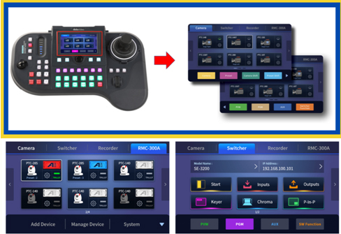 其二,企业内部人员并不是影视从业人员,简单快速上手并灵活操作的系统是企业首要考量的。RMC-300A的操作界面设计了用户常用的摄像控制与多源信号处理的物理按键,“构图调取”、“机位切换”一键迅速响应,键程和手感尽显专业;将参数设置和功能菜单都通过5英寸触控屏显示,“一键一功能”使用界面简洁友好,RGB背光GUI图形按键设计,不管强光或者暗光环境下,都可以清楚看见屏幕的内容,用户可轻松在触控面板上进行操作。这是一款普通企业员工也能轻松理解,使用起来轻松高效的设备。