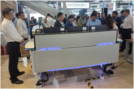 展位现场,照彰引人注目的“飞碟”控制台和智慧控制台精湛的制造工艺水平、过硬的产品质量,造就了高品质产品,也深受参观人员喜欢和点赞。