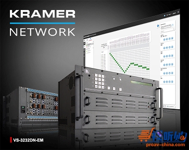 Kramer Network将VS-3232DN-EM可管理模块化矩阵切换器推送到了一个全新高度:使其真正成为强大的省时省力的工具,如实现自动发现,时时甄别板卡及类型,位置和状态,轻松的固件升级,灵活的虚拟切换,并集成了Kramer Maestro房间自动化功能及更多。