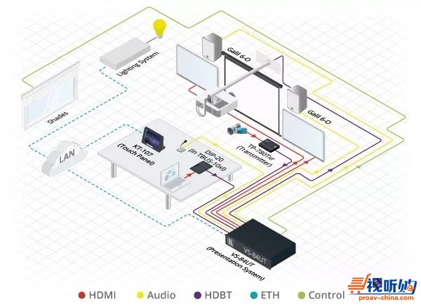 VS-84UT 是一款极具灵活性的4K@60Hz (4:2:0)音视频演示系统一体机,带集成范围延长和集成控制系统,包括8路输入和4路输出。具有快速切换视频、HDBaseT 2.0范围延长、主房间控制和卓越音频等功能。