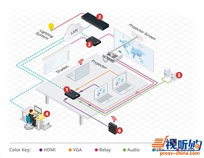 • Kramer Maestro 单触发、完整的房间自动化管理