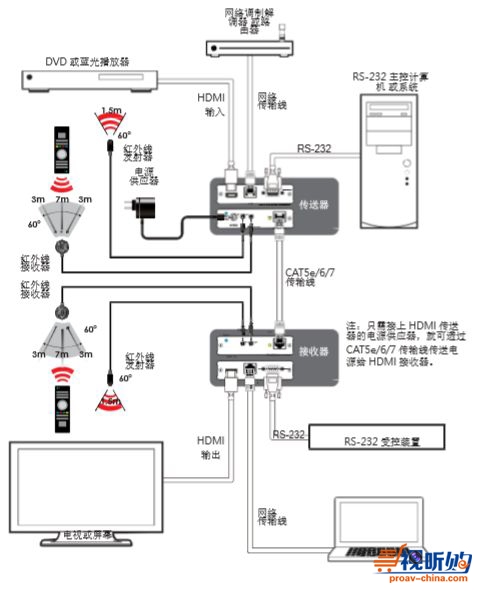 传送器输出口 1×CAT5e/6/7 端子,1× 红外线发射器