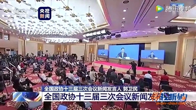 2020年5月20日15时,全国政协十三届三次会议新闻发布会在京召开,设在北京梅地亚中心的两会新闻中心,新闻发布厅原来的主席台已被三块电子屏幕替代,这是两会历史上首场采用网络视频形式举行的新闻发布会,发言人将通过屏幕视频点名记者,参会记者与发言人“隔空”问答。