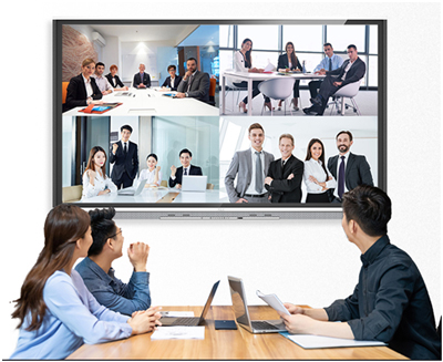 通过智能会议平板的远程会议视频软件,则能一键轻松发起多方在线视频会议,并实现屏幕共享、白板互动等功能,有效跨越空间,告别差旅奔波,使异地轻松交流,拉近伙伴距离,同时网路稳定性强,能有效提升沟通效率。