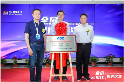 冠捷科技副总裁兼OBM中国区MNT/PD/HTV BU总经理陈涛、艾德蒙科技总经理阎立东等领导一行出席了此次揭牌仪式,共同见证AOC浙江6S运营服务中心落成,并在现场致贺词,表达对运营中心的高度认可。揭幕仪式现场,由陈总、阎总及浙江智曜科技总经理肖江涛肖总共同为6S运营服务中心揭牌,正式宣告6S运营服务中心落成应用。