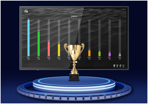 每年到年底时都会进行各类评选,在年会现场,则能通过AOC旗舰版智能会议平板进行投票PK。不管是优秀员工、优秀作品评比,还是最佳年会节目票选,都能实时展示投票排名及票数等信息,让每一次投票数据波动都能牵动每一位员工的心,再配上高昂激情的背景音乐,更能引爆年会会场!