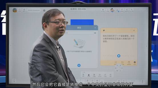 T33Z还是业界首款搭配语音便签功能的会议平板。相比于普通的文字便签,语音便签能更快速、准确记录会议要点,它还支持文字转换,更方便生成会议记录,在日常会议使用中更为实用。此外在白板功能中,T33Z还具有思维导图、笔锋识别、手写识别、在线搜索等丰富的运用, AOC PD产品总监陈林也都一一进行了演示。