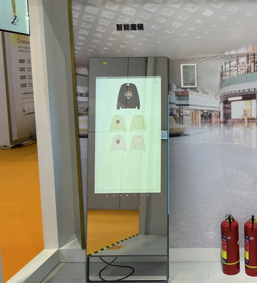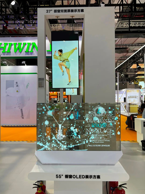 零售橱窗场景中,一体化设计的OLED透明屏,其透明度达到40%,时尚简约,吸睛夺目,适合珠宝、饰品、腕表等奢侈品店应用;采用超薄机身设计,700nits高屏亮度并能实现双面异显的双面屏则能在实现信息智慧化展示之余,充分提升如金融银行、专柜门店等场景档次;创新性产品穿衣魔镜则可以实现顾客自主选择和虚拟试衣,针对相应的节假日推送对应款式,针对会员也可以推送个性化款式等,妥妥的“时尚黑科技”!