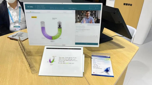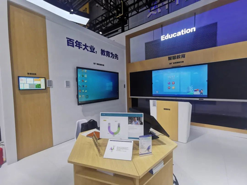 针对智慧教育应用,现场重点展示了智能交互黑板搭配智慧讲台的全新教育方案。其中,智慧讲台依托于教育智慧平台,让教师更轻松、更高效地进行授课及课堂管理的智慧教学辅助工具,可以实现大小屏互动及高效课堂管理。该讲台还预留IOT智慧物联管理接入通道,实现以智慧讲桌为中心,既满足授课及班级管理需求,也满足院校对于教室的空调、电通窗帘、灯光、通风系统及各类传感器的物联集控管理需求,形成智慧教室整体解决方案。