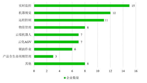 在提供有效调研的18家企业中,分别有83.3%和66.7%的企业正在做实时监控和机器视觉的应用和探索,这两类视觉相关的能力是当前应用最广的5G+工业互联网能力,这主要得益于5G网络的大带宽和低时延特性,以及AI算法的进步。排在第三位的是远程控制能力,有61.1%企业在做相关应用探索,但是在实际工业生产过程中,由于环境复杂、出错成本高等因素,返控和实施控制仍非常困难。