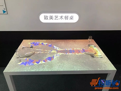 由松下激光投影灯PT-JX200G系列打造出的“创意LOGO墙”和“致美艺术餐桌”,也令大家兴趣盎然、热议不断。这款单芯片DLP激光投影灯是整合了照明和投影的特色产品。仅4.5千克的轻巧机身,搭载了可连续运行20,000小时的激光光源。可移动式的安装导轨和可任意角度投射的特点,让它几乎可以安装在任何地方。4种自定义灯光模式使展厅、商店,亦或是餐厅都能按照客户的需求进行投影。