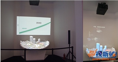 与过去纯实物展示和打印、喷绘展示完全不同的是,松下投影机在整个“松下未来EXPO”中担当起重要的角色。