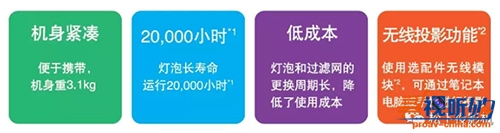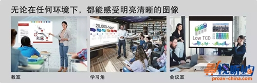 另外,紧凑轻巧的机身和4,300流明的中心亮度,让投影机更加灵活、实用,可以在办公室及教室呈现生动鲜活的影像。