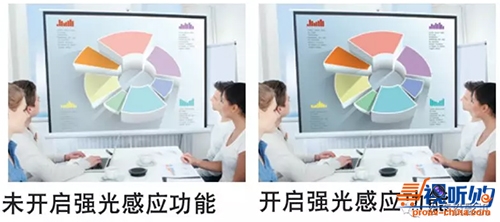 具有松下特有的强光感应功能,利用内置光线传感器实时监测环境照明度并实时调节投影图像亮度和色调,使以往在明亮环境中难以看清的暗部区域细节都可清晰再现。不需要为了投影画面而刻意降低室内光线。
