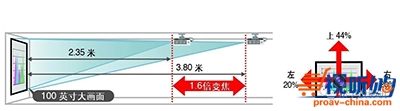 1.6倍变焦镜头实现灵活的1.09–1.77:1投射比,可进行近距离或远距离的大画面投影:适合大型或小型房间内固定安装。大范围垂直/水平镜头位移功能可根据投影屏幕状况调整图像位置。此功能方便了投影位置较高、较低,或轴偏离情况下投影画面的调节。