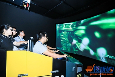 本次松下投影机最为火爆的4D动感飞车展项获得了大量观众的喜爱与参与。利用偏振立体技术,在投影机镜头前端加装偏振立体功能的镜片、配合专用立体观看眼镜、以及根据影片进行互动的仿真互动载体。使观众体验到沉浸式互动游戏的乐趣。
