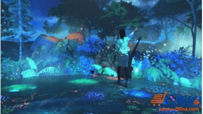 空间互动体验方法:进入空间后,面对投影墙壁半米距离站立,挥动双手或单手,墙壁投影画面会根据手臂动作反馈梦幻动态影像;在空间任意走动,地面会根据行走轨迹进行动态影像反馈。