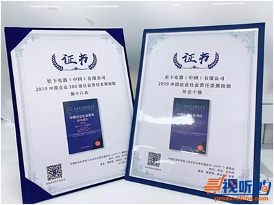 本次年度评选,松下电器以社会责任发展指数84.4分的成绩,位列中国企业300强指数排名第18名、外资企业100强指数排名第3名,日资企业指数排名第1名的评价。这是对于松下电器一直以来高度重视履行企业的社会责任,不断推进责任品牌建设的认可与肯定。