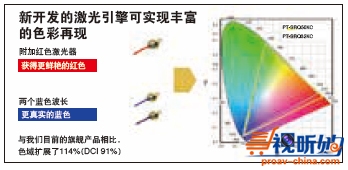 PT-SRQ50KC的对比度高达20,000:1,使用松下特有的SOLID SHINE激光光源,新型红蓝双色激光技术配合原生4K分辨率及超广色域范围,使得投射出的画面呈现出比以往产品更出众的成像效果。