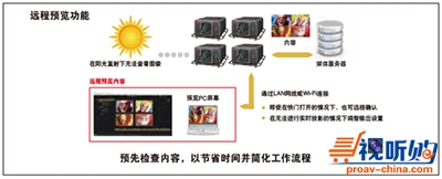 配合增加了NFC功能的Smart Projector Control app 2.0版本,,可以在待机状态下设置读写并通过智能手机的相机进行自动聚焦。视频显示设备监控软件可通过Wi-FI或局域网连接笔记本电脑进行远程预览和检查,也可通过网络浏览器访问。可在投影机待机、快门开启以及当阳光直射屏幕时使用。它可在安装完成前提供修复错误的机会。