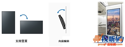 ◆灵活安装。安装角度可调整,安装倾斜高度可达20°,高位置安装也可易于观看。