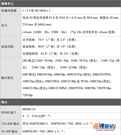 支持4K 3840×2160 59.94p/50p拍摄、12G-SDI输出