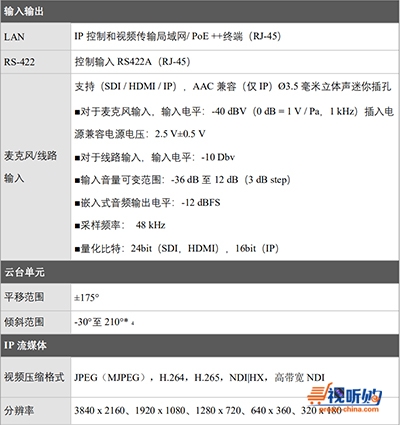 ● 前瞻的4K 4:2:2 10bit 59.94p/50p,12G SDI、3G SDI、HDMI2.0、POE++等一系列配置。