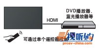 使用HDMI电缆,连接HDMI-CEC兼容设备和显示器时,通过显示器的遥控器可控制兼容设备进行基本操作(如开机/关机)。
