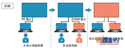 当前播放内容的输入信号中断,或者收到新的输入信号时,显示器会自主切换信号源。因此会议上有发言者更替时,通过更改电缆连接即可切换显示图像,无需远程遥控。