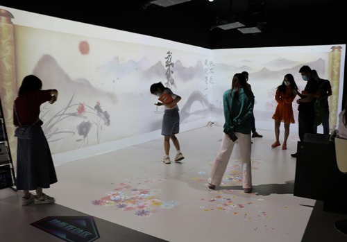 现场,观众争相体验“声控”书法黑科技的“国风艺术空间”。声画交互,光影斜投,这个妙趣横生又颇具古风雅韵的空间获得众赞。