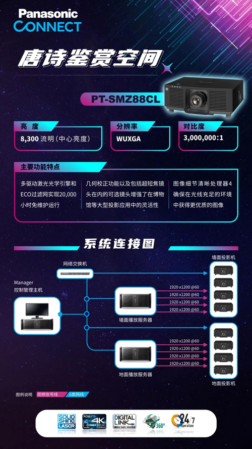 “唐诗鉴赏空间”展项所用投影机及系统构成: