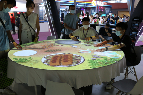 梦幻绚丽的光影餐桌不仅可以点菜、游戏,让整个用餐过程充满欢乐,充满想像,似乎为现场观众送上了丰盛的套餐,带来了心灵的享受。