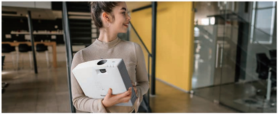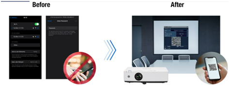 PT-LMZ420C系列投影机支持选配件无线模块实现无线投影。无线功能支持通过扫描二维码直接连接无线局域网,允许通过软件和应用程序在大屏幕上共享文档、照片和视频。此外,还可以使用USB记忆卡进行投影,无需任何线缆即可感受到轻松、灵活的工作体验。