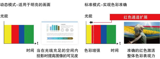 色彩增强系统是一种色彩优化技术,具有两种可选模式。动态模式可以平衡亮度和色彩,在明亮的环境中也能呈现清晰的图像。标准模式通过扩展红色通道输出来优化色彩再现,呈现更自然生动的红色表现。这对于艺术图像及其他色彩丰富内容的准确再现至关重要。