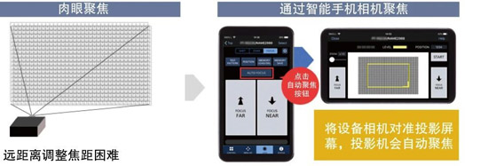 在手机端使用该功能,最多可以对64台投影机进行电源控制、快门控制、屏幕菜单控制、信号切换、测试模式切换、菜单操作、镜头调整、自动聚焦等操作。