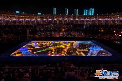 有一种美,叫力量之美!有一种强,叫体魄之强!有一种光,叫光影炫目!有一种缘,叫与你随行!全运会开幕式最大亮点,莫过于使用最先进的投影技术。98台松下激光工程投影机点亮奥体中心,呈现近8000平米巨幅画面,屏前照度超过300lux艳压群芳!让这充满着祖国情怀,体育梦想的夜晚变得更加难忘!