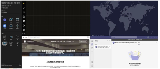 SimpleShare软件搭配Pana绘景显示屏具有非常灵活的布局体验,在本地会议的时候,用户可以轻松的同时打开浏览器,白板等多个窗口,书写、批注、存储、分享、多种功能随心使用,不用担心互相遮挡和来回调用的麻烦。在与异地会议时,它集成了丰富的会议软件,瞩目云视频,腾讯会议、zoom等,都可一键开启。共享屏幕、双向发表不同意见、诸多功能集于一体。