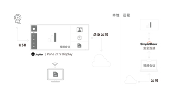 SimpleShare软件结合Pana绘景系列产品,它不仅拥有让人印象深刻的显示能力,也可以让用户快速使用视频会议、白板、便签、屏幕截图和共享功能,以高效和充分利用的理念在 Pana 上举行任何类型的本地会议或者视频会议。