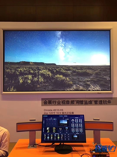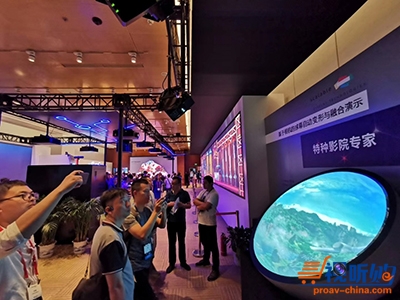 展会现场,赢康还带来了球幕投影展示,通过 Christie DWU630-GS投影机和scalable自动变形与融合软件播放展示,演示片源由赢康策划完成,配合球幕特点,完美呈现真正的球幕影院投影过程。