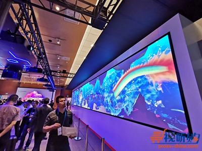 本次展会上,赢康通过一面16米长大屏幕演示了建筑投影,片源由赢康独立策划完成,该投影由科视D20WU-HS投影机演示,精美的画面、鲜艳真实的色彩还原和有趣生动的影片内容让所有参观者纷纷驻足欣赏。