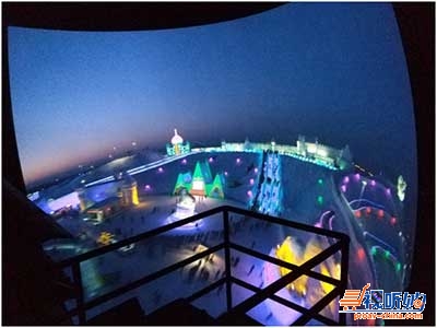 “飞越龙江”是世界一流的超大球幕动感影院,球幕直径20米,高度为15.8米,由二十余台科视 Roadster HD20K-J投影机投影,完美的沉浸感,带领游客纵览哈尔滨壮美风光。