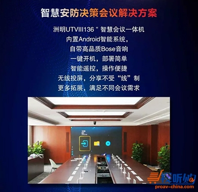洲明UTVIII136”智慧会议一体机内置Android智能系统,自带高品质Bose音响,一键开机,部署简单;智能遥控,操作便捷;无线投展,分享不受“线”制;更多拓展,满足不同会议需求。