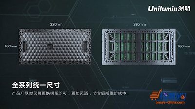虽然USF系列“个头”都一样,但是长得还是略有区别。室内屏采用底壳+后盖设计,外形更美观、防护性也更强;室外屏考虑到散热效果则没有这一设计。